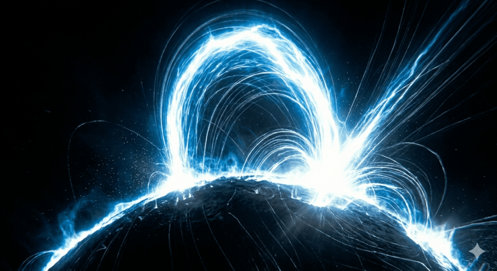 Beneath the radium-vein of plasma glare,