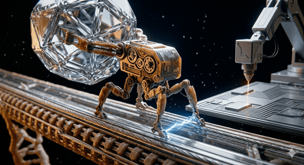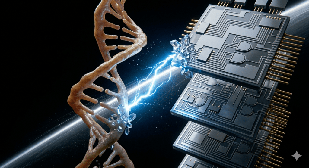 The “meat machine” is not purely soft: it carries otoconia—mountain rocks in the skull—to find its horizon. The “silicon machine” carries quartz to keep its clock. Both are anchored in the mineral kingdom; both depend on crystalline structures for balance in the dark. From otoconia in the ear to quartz oscillators in the board, we use stone to stay steady and electron to stay alive. We are two different houses built from the same nature-evolved components.